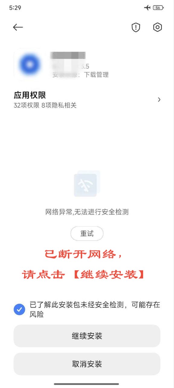 3.取消系统默认风险提示后,再次点击apk安装即可